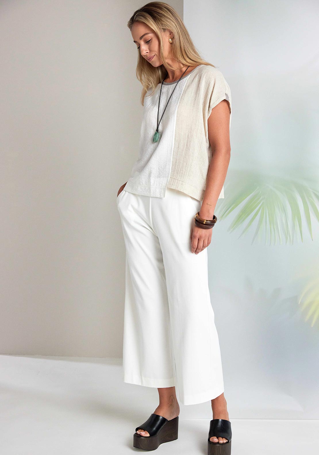 Everyone loves a wide leg trouser in a soft light weight fabric for summer. NAYA keep their offering simple, but not sheer, there is substance to this piece. Adding a pull up easy breezy waistband to finish ensures it’s a piece that you will love.