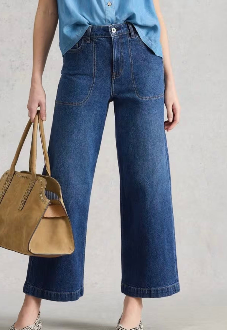 Wide leg jeans are back, and we are so glad to see them. These ones are comfy and cropped at the ankle (perfect for showing off a great pair of shoes).