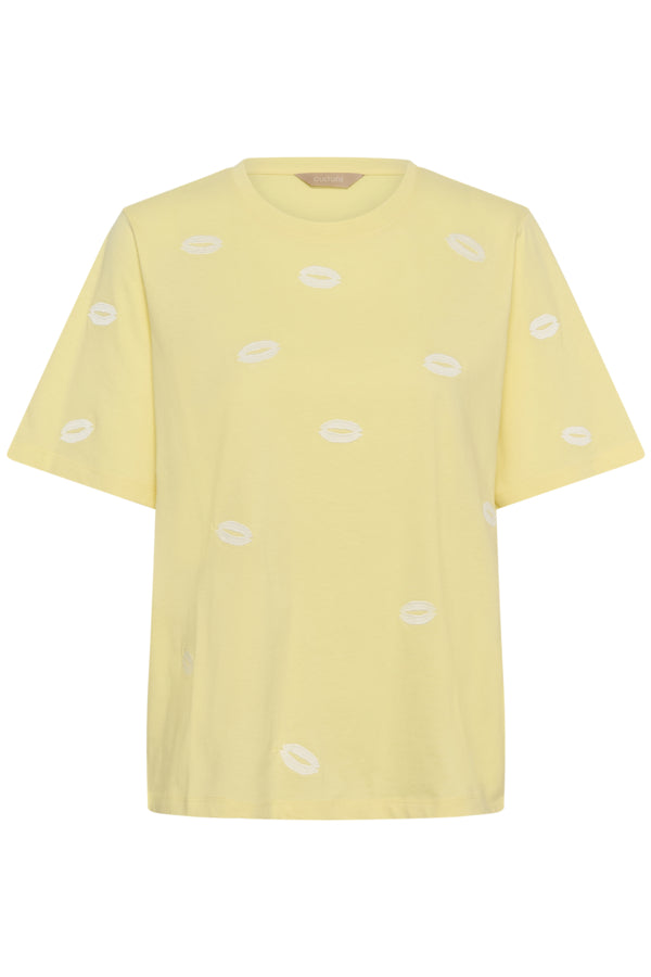This straight-fit T-shirt features a smooth finish and understated scattered embroidered accents. Designed with a classic crew neckline and mid-length sleeves for a clean modern look.