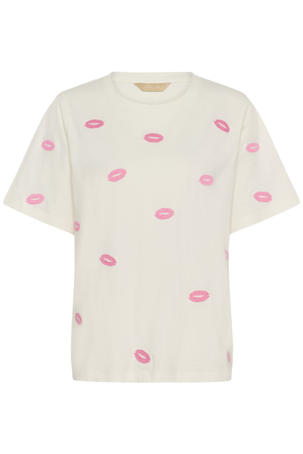 This straight-fit T-shirt features a smooth finish and understated scattered embroidered accents. Designed with a classic crew neckline and mid-length sleeves for a clean modern look.