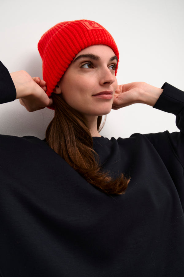 This ribbed knit beanie delivers a relaxed fit and a modern look, ideal for casual wear. Designed with a turned-up cuff for added warmth and comfort, it offers a versatile addition to everyday outfits.