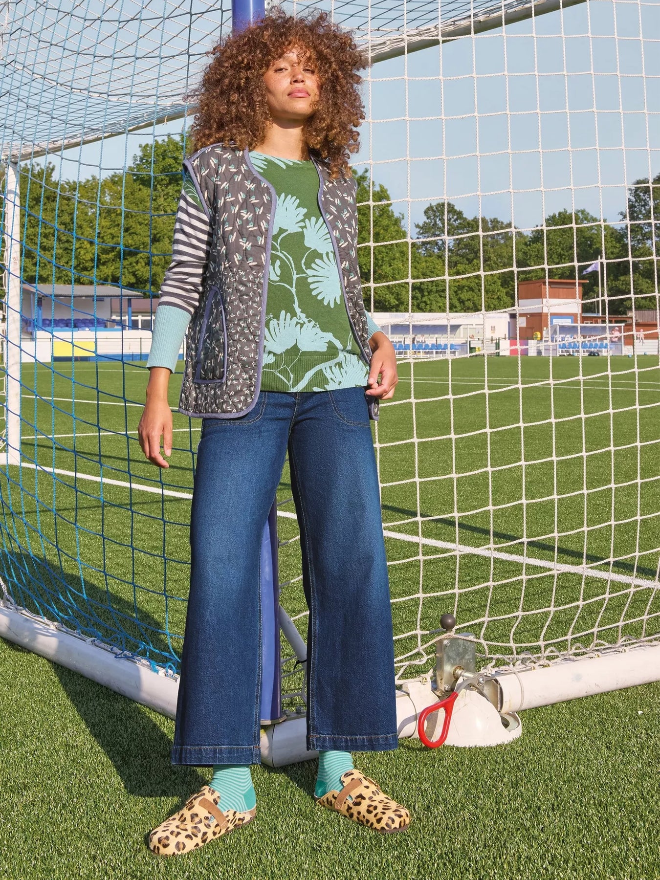Wide leg jeans are back, and we are so glad to see them. These ones are comfy and cropped at the ankle (perfect for showing off a great pair of shoes).