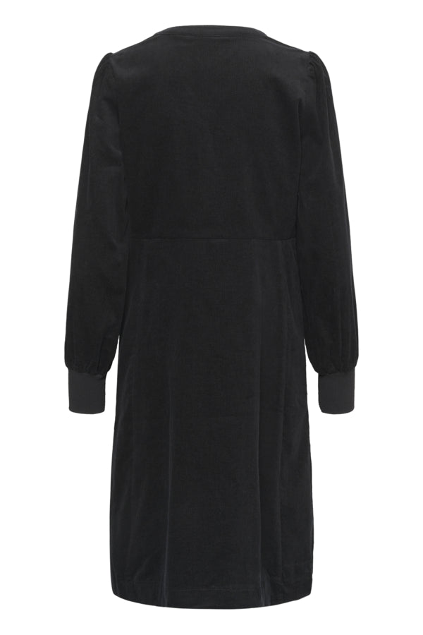 A-line dress for women with a relaxed fit, featuring a round V-neckline with button placket, three-quarter sleeves, and knee length. Offers versatile wear and elevated comfort for casual or office settings.