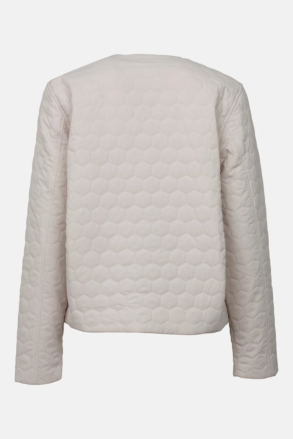 This short bomber jacket features soft padding and a unique quilted design. Pleats at the hem create volume, while welted pockets come with a hidden inner press button. The front zipper and crew neck offer a simple and sleek look.