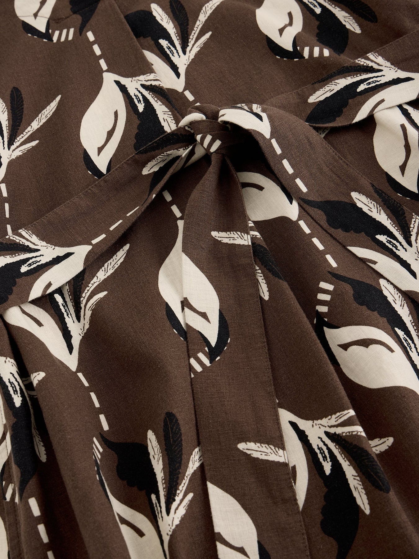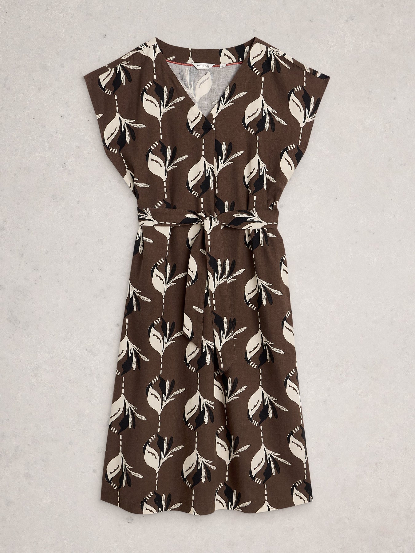 Beautiful deep chocloate linen blend dress, can be worn loose or with its belt.