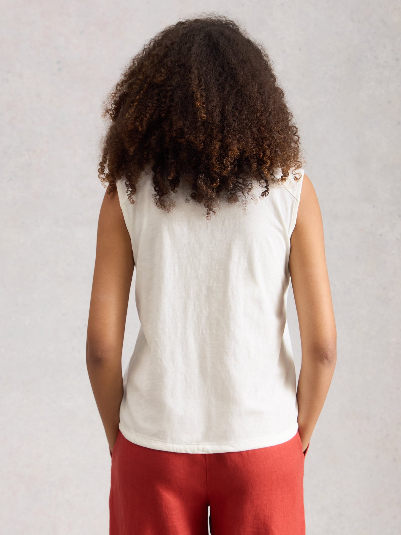 A floaty, sleeveless shirt with a tie-hem detail. And a bit of broderie. (It's just cooler that way.)